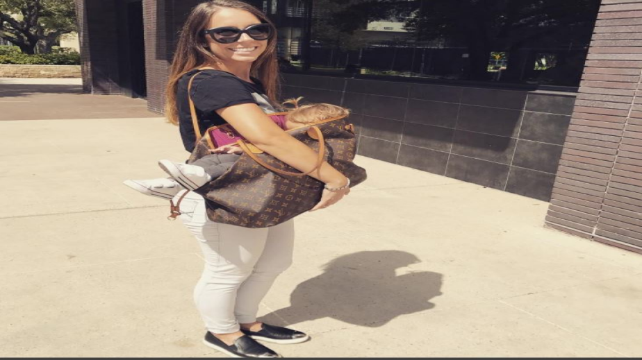 Сестрата на Мика Стоичкова разнася малката Миа като сандвич в дамската си чанта. Чаровницата напъха детето в модния си аксесоар и така я разходи из улиците на Тексас, САЩ, видя HotArena.