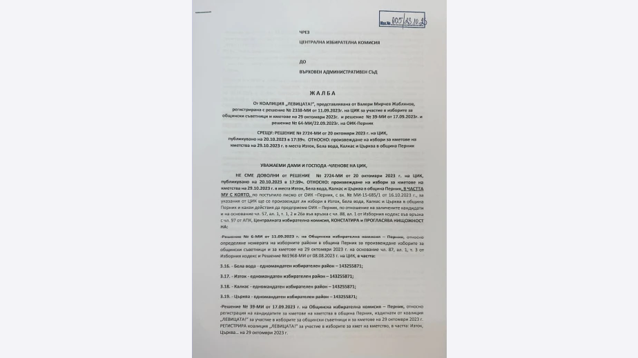 Бъдещето на четирите пернишки кметства „Изток”, „Църква”, „Бела вода” и „Калкас” е в ръцете на общинският съвет, който ще се сформира след местните избори на 29-ти октомври. Въпреки усилията на коалиция „ЛЕВИЦАТА“ , жалбите до Административен съд-Перник и до Върховния административен съд, решението е да няма избори за кмет на 4-те кметства на територията на община Перник.