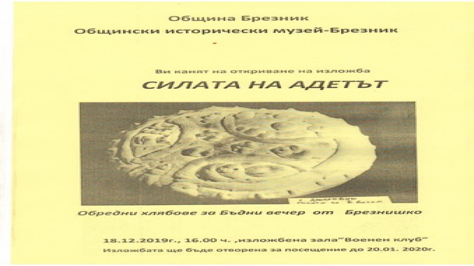 Обредни хлябове за Бъдни вечер от Брезнишко ще бъдат показани в изложба в местния исторически музей. „Силата на адетът“ ще бъде открита утре – 18 декември, от 16 ч.