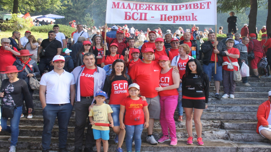 Над 600 социалисти от Перник тръгнаха рано сутринта вчера към Бузлуджа за традиционния събор на БСП. Тази година червените се обединиха около мотото "Единни за България, която обичаме". Рекорден брой социалисти се събраха, за да отбележат ежегодния събор на Бузлуджа. Според данни членовете и симпатизантите тази година са надхвърляли 60 хиляди души.