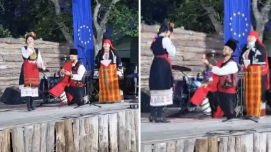Истинска романтика озари сцената на Фестивала на фолклорната носия в Жеравна. Митко - синът на жената с най-силен глас в света Смиляна Захариева, коленичи пред своята любима Ани и ѝ предложи брак, видя БЛИЦ