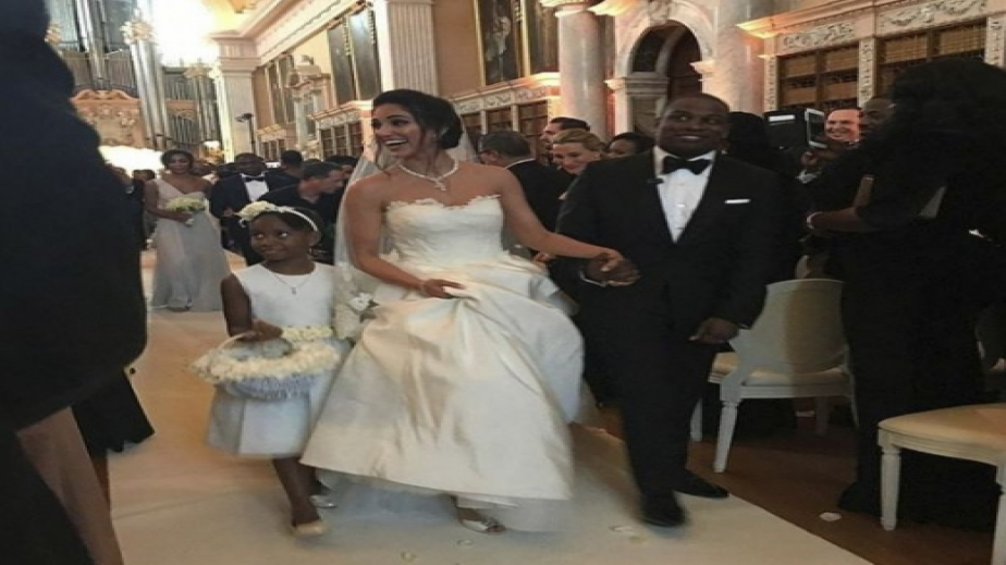 Старинният замък бил украсен лично от известния флорист Джеф Литам с милиони бели рози и орхидеи на стойност близо 200 000 паунда. На официалната част от церемонията иранската моделка била в искрящо бяла рокля.