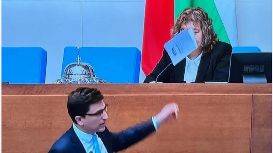 Депутатът от "Продължаваме промяната" Венко Сабрутев подхвърли правилника на Народното събрание на парламентарния шеф Наталия Киселова. Политикът от ПП се изнерви, че юристката не му дава думата и когато стигна до трибуната, хвърли книжката към нея, за да я прочете.