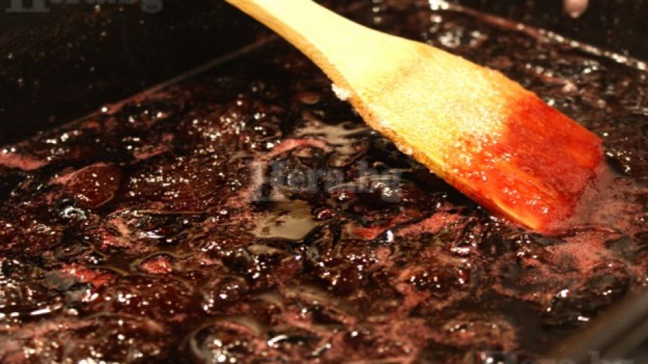 Разпределете сместа в предварително стерилизирани и още горещи буркани, затворете с капачки и охладете./Рецептата е вцета от gotvach.bg
