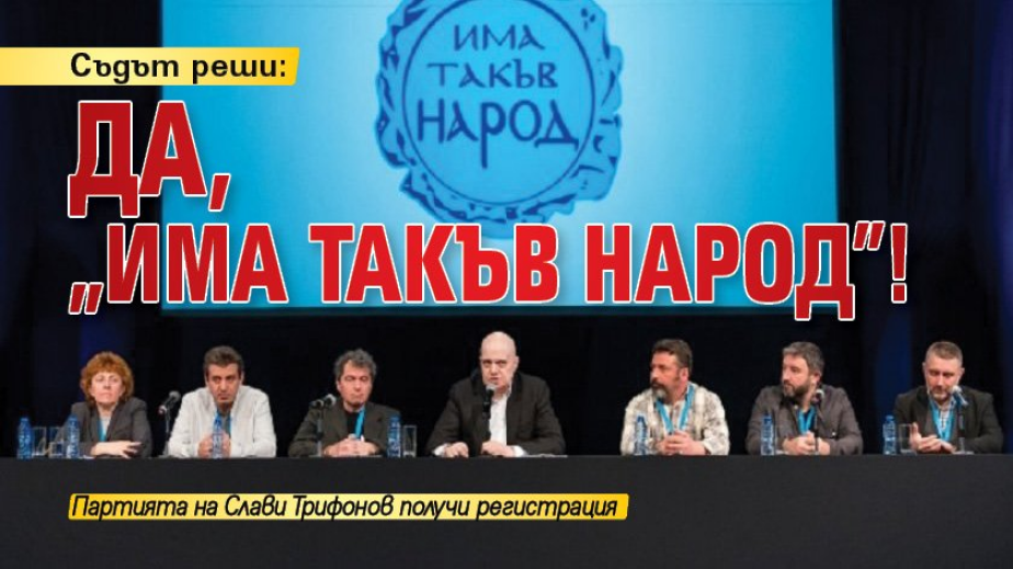 Софийски градски съд позволи вписването на партия „Има такъв народ” в публичния регистър на политическите партии. Съдебният състав, с председател съдия Цветанка Бенина, прие, че са изпълнени всички законови изисквания, молбата за регистрация е основателна и процесуално допустима. Символът на партията също не противоречи на нормата на закона, пише Lupa.bg