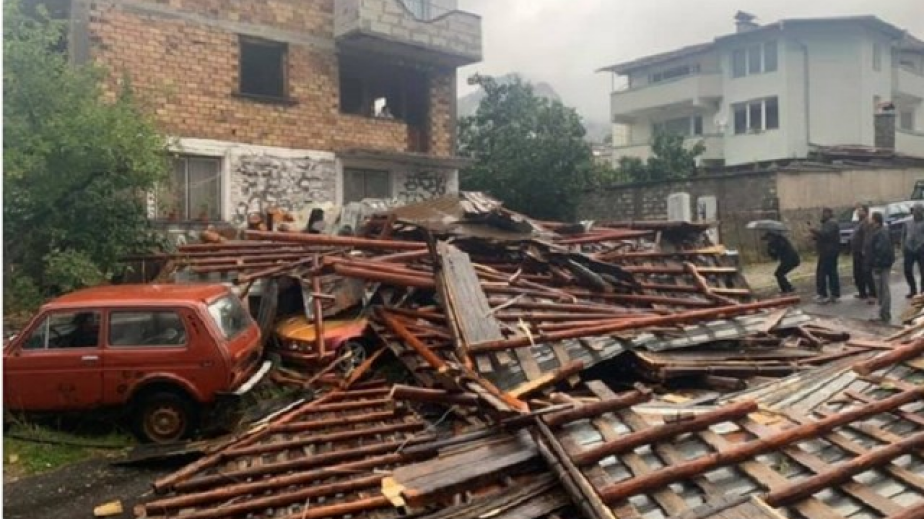 По-сериозни са пораженията в Девин. В едно от местните училища, чиито покривът е напълно отнесен, днес е обявен неучебен ден. /Източник: Нова ТВ