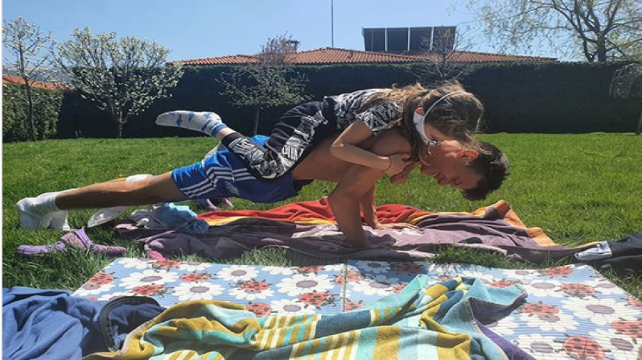 Тя показа снимка на децата, които упорито тренират на тревата, след като са омели цяла тава с баницата, което пък със сигурност означава, че Яна се е справила в кухнята и май ще й се наложи по-често да готви по време на карантината