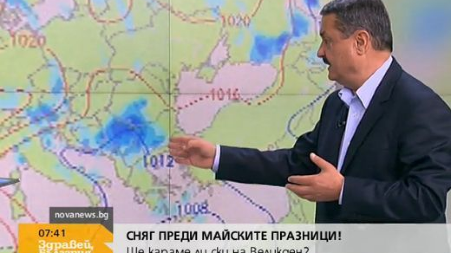 Очаква ни пролетен сняг преди майските празници. Времето за Великден обаче ще се задържи топло, между 12 и 15 градуса. До Гергьовден времето ще се оправи и ни очакват слънчеви дни.Поне до 15-ти май няма да има слани. Вчера неше най-студения ден за месец Април, заяви по Нова телевизия синоптикът Георги Рачев. Климатологът подкани скиорите да атакуват смело зимните писти, защото със сигурност ще има добри условия за каране.