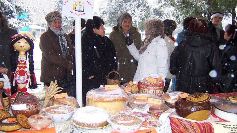 Точно в 11 ч. започна традиционната кулинарна изложба. В нея взеха участие колективи при читалищата в Радомир, кв. „Върба“, с. Кленовик, с. Дрен, с. Друган, с. Кондофрей, с. Дебели лаг, с. Прибой, с. Долна Диканя, с. Владимир, с. Извор, с. Стефаново, както и от Дома за стари хора „Св. Иван Рилски“ в Радомир и Пенсионерския клуб в с. Житуша. На трапеза в центъра на града бяха наредени домашно приготвени коледни ястия – баници, зелници, погачи, сарми, пача, пълнени чушки, сладкиши и всякакви вкусотии. Не липсваше и домашна ракия.