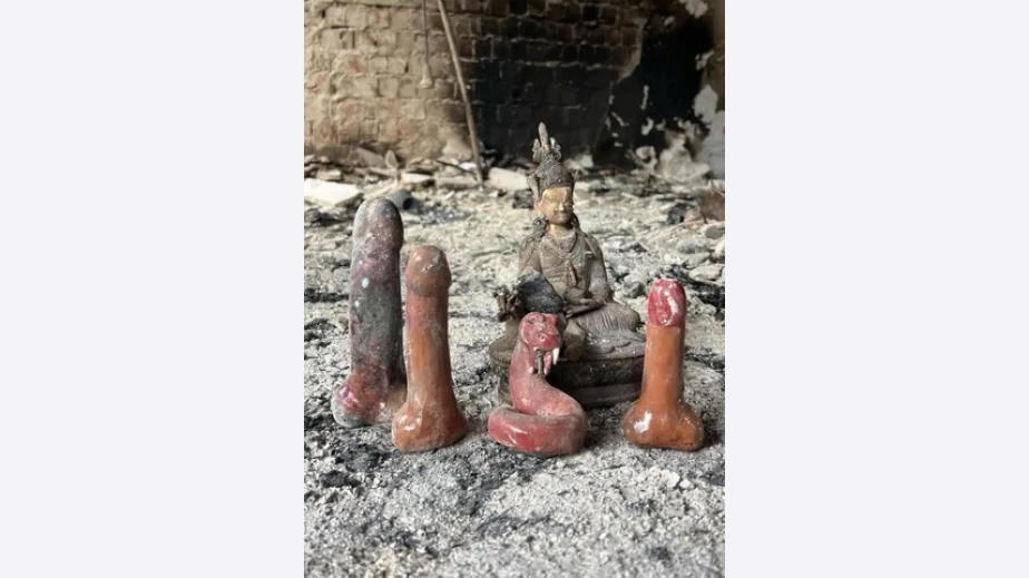 В имота е открита множество религиозна литература, проповядваща тантрични и сексуални ритуали, както и скулптори изобразяващи мъжки полови органи.