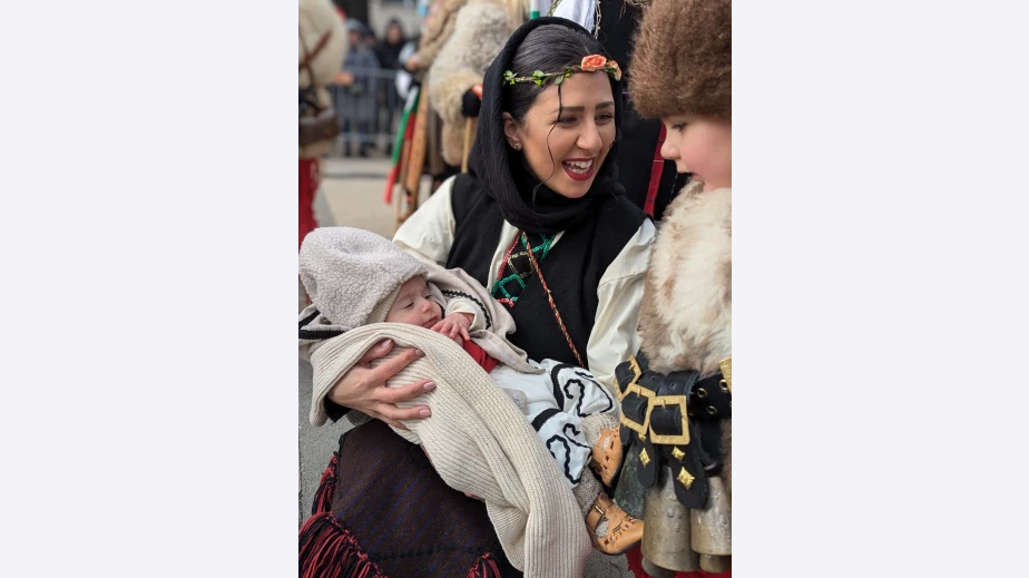 Уникална снимка на млада майка с бебе на ръце умили мрежите. Красивата българка е облечена в народна носия, а в ръцете си държи двумесечното си бебе. С нея в кадър е и по-големия ѝ син Лъчезар, който и на 4 години. През 2024 той отново бе в обектива на фотографите снимали пернишката „Сурва“, тогава едва на 2 години.