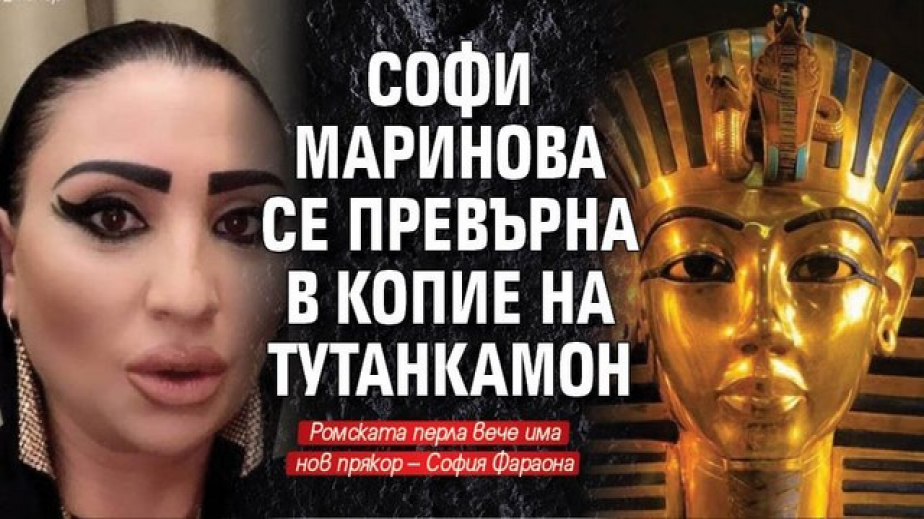 Софи Маринова стана за смях с новата си визия. Ромската перла си е зализала косата, направила си е повече от необходимото плътни вежди, което й докара доста комичен вид. Феновете й я оприличиха като копие на Тутанкамон и дори показаха колаж между нея и египетския фараон, видя Lupa.bg