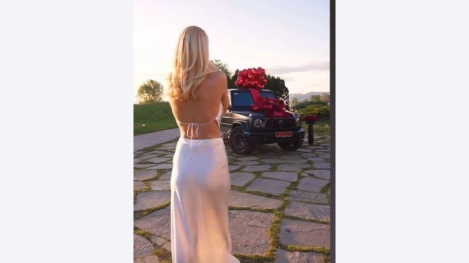 Във видеото отлъчената от Алек Младенов блондинка не може да скрие емоциите си, породени от лъскавия подарък, а последователите й я заливат с въпроси кой е мистериозният и щедър любовник.