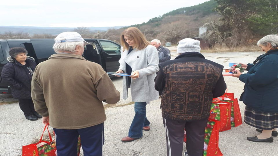 “В събота заедно с екипа на Живата вода на България се срещнахме се Ицо, Петър, Веса, Станка, Александър, Георги – 3/5-ти от населението. Отидохме да им пожелаем весели празници и здраве през новата година. Намерихме ги усмихнати и шеговити, доволни, че са живи и здрави.”, добави съпругата на президента.
