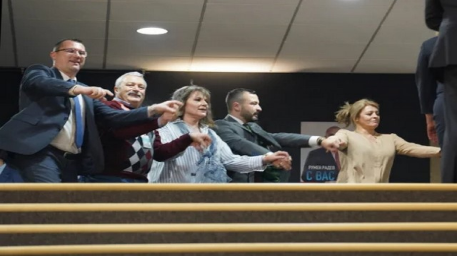 Кадри показаха как тя и други привърженици на Радев тропат хоро след победата му. Радева танцува под строгия поглед на гардове на НСО.
