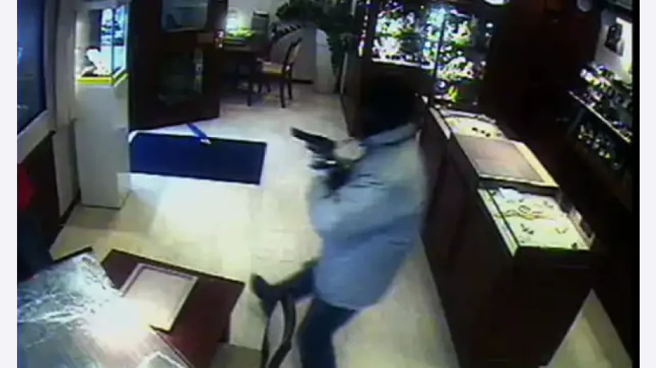 По време на грабежа 48-годишният заподозрян, действащ с неизвестен съучастник, заплашил двама служители с огнестрелно оръжие, като ги задържал, докато крал луксозни часовници и бижута на стойност около 580 000 евро.