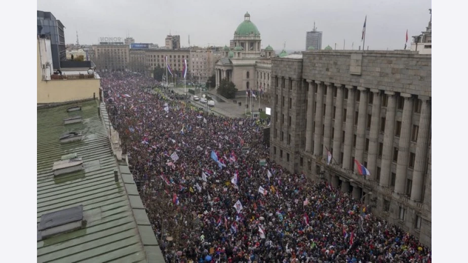 В сръбската столица днес имаше и контрапротест на привърженици на президента Вучич, включително фермери с трактори. 13 души са задържани при спорадични изблици на насилие. Гневът срещу управляващите беше породен от смъртта на 15 души на 1 ноември. Те станаха жертва на бетонна козирка, рухнала след ремонт на гарата в Нови Сад. /Източник: БНТ
