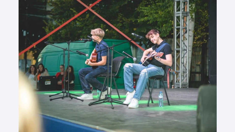 Празничният концерт с участието на младите китаристи Филип и Васил и хитовият изпълнител Криско събра стотици младежи и гости на Радомир в центъра на града.