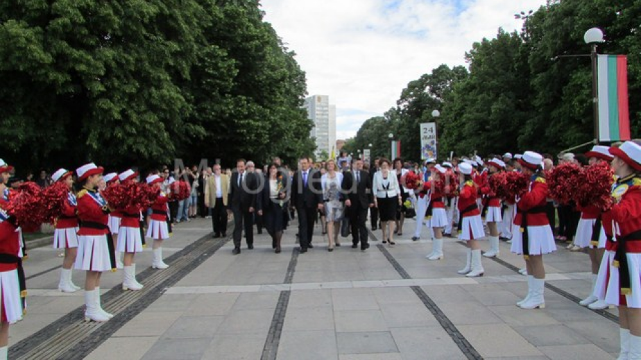 На тържеството присъстваха народните представител Ангел Найденов и Ирена Соколова, областният управител Иво Петров, председателят на Общинския съвет Владислав Караилив, шефката на образователния инспекторат Ваня Коконова. Перничани се насладиха на изпълненията на мажоретките от VІ-то училище в града, изслушаха хоровото изпълнение на „Върви, народе възродени” и наблюдаваха щафетно предаване на символното „Знаме на знанието” от представители на Випуск 2013 на Випуск 2014. След това пък на площада започна дефиле на училищата.