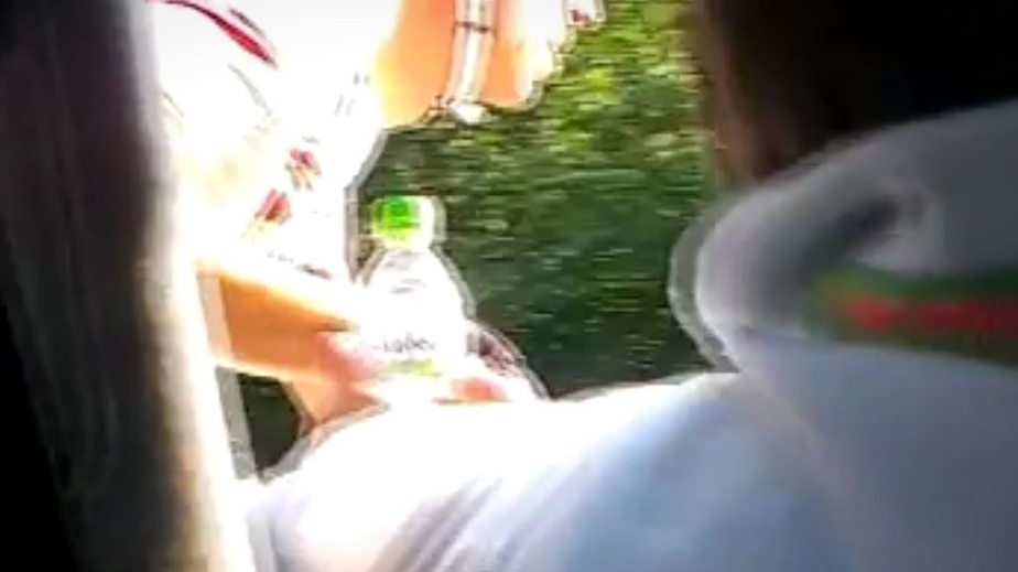 А ето какво се вижда на клиповете. В кадър е състезателят с номер 22 Стефан Христов, впоследствие определен за участник на Олимпиадата. На видеозаписа виждаме как от колата, която го придружава в състезанието по правилник, шофьорът подава бутилка с вода. Вместо да я вземе и да продължи обаче, Христов задържа няколко секунди и потегля напред. Случаят се повтаря.