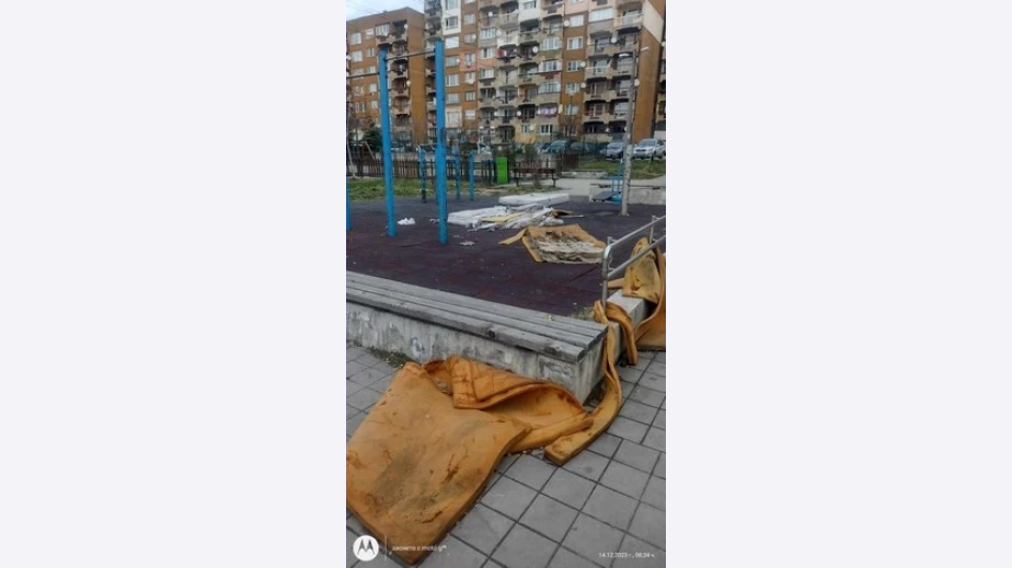 Не е ясно кой е изхвърлил матраците и защо те са на детската площадка.