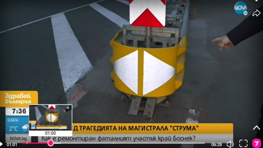 На мястото на мантинелата, която се вряза в автобуса, е поставен „терминал”. „Проблемът е, че двете стрелки не са регламентирани и не могат да се слагат. В същото време отгоре има знак, който е с по-голяма степен на светлоотразителност и хората се объркват”, посочи Диана Русинова от Европейския център за транспортни политики.