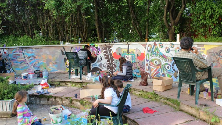 Студенти от НБУ изрисуваха стената пред Арт салона.