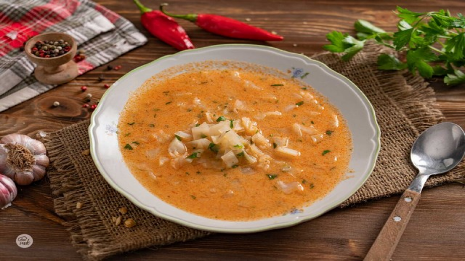 Когато зелето омекне в олиото запържете брашното, червения пипер и доматеното пюре. След това разредете запръжката с бульон от зелето и я изсипете обратно в тенджерата.