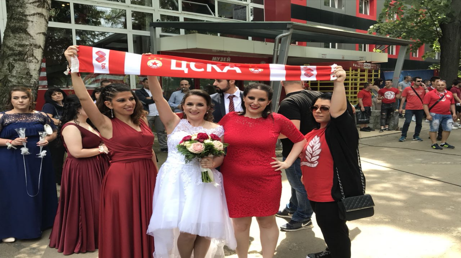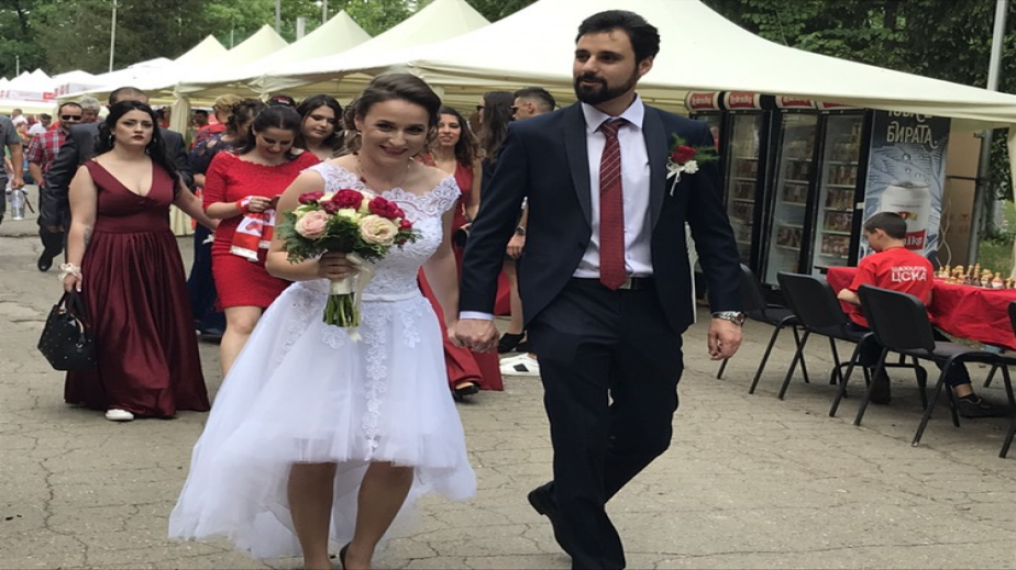 Преди точно година - на 69-ия рожден ден на ЦСКА, Велизар предлага брак на своята любима Диана, а от днес те вече са семейство Драгомирови. Двамата не пропускат мач на отбора - както на "Армията", така и при гостуванията на тима, уточняват "армейците".