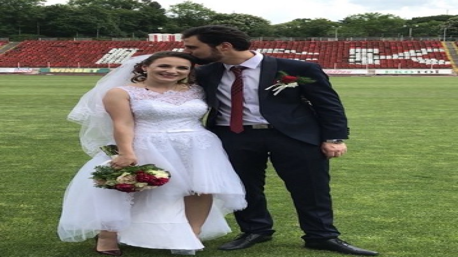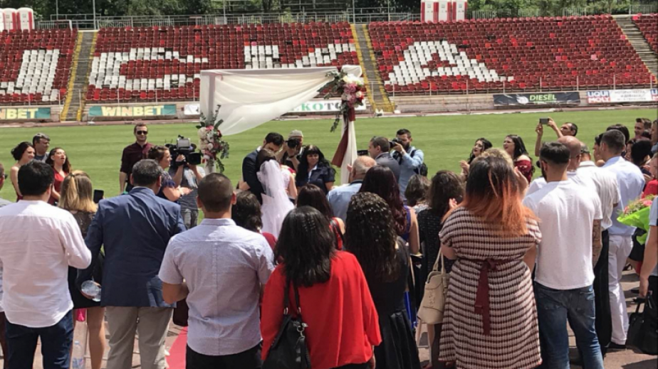 Диана и Велизар Драгомирови сключиха граждански брак на стадиона - мястото, на което се запознават преди 8 години. Тогава започва тяхната приказка, а днес те си обещаха да се обичат до края на живота си и все така яростно да подкрепят любимия ЦСКА, съобщават "червените" на официалния си сайт.