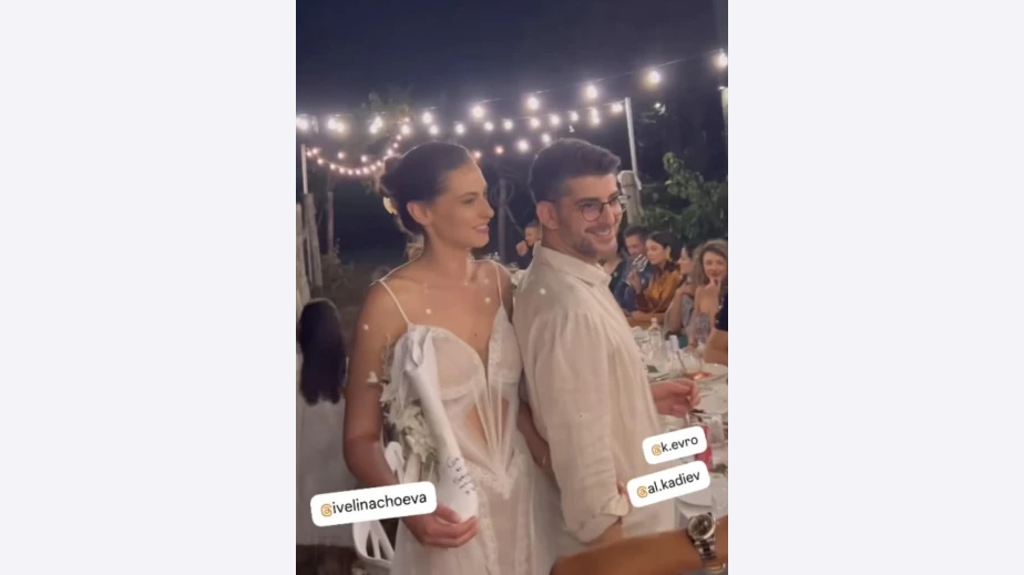 Сватбата на Александър Кадиев и Ивелина Чоева се проведе в тесен приятелски кръг. Сред гостите, освен Деси Стоянова, са моделката Александра Петканова, поетът Добромир Банев, актьорът Петър Антонов. Дамите носеха бели чадърчета, с които се пазеха от жаркото слънце в долината.
