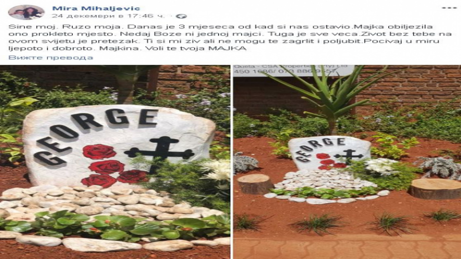Свекървата на Мис България Наталия Гуркова написа сърцераздирателна изповед за убития си син Джордже Михалевич. Мира Михалевич реши да излее мъката си в личния й фейсбук профил, където освен посланието сподели и първи снимки от гроба на убития й син, пише БЛИЦ.