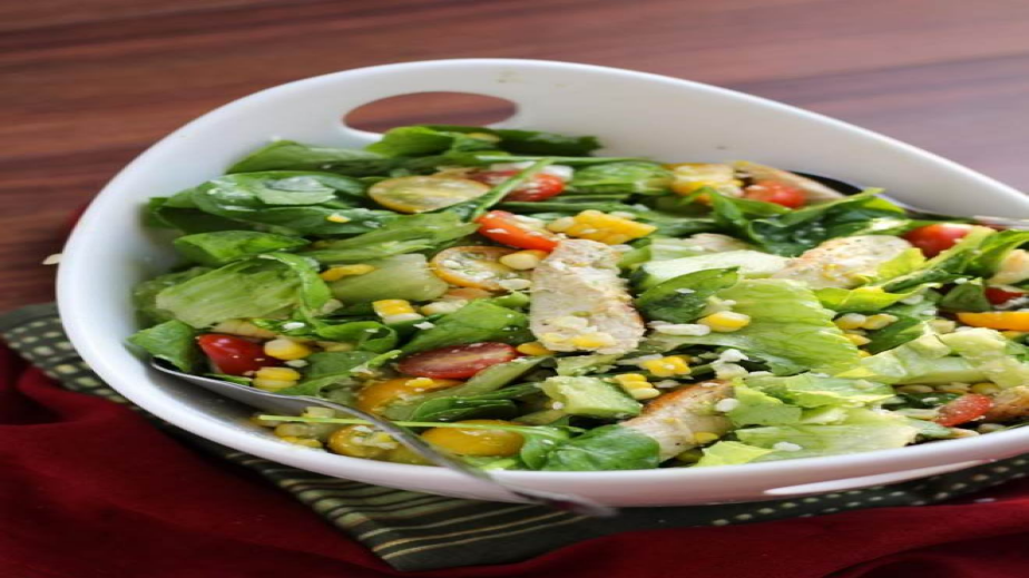 Краставицата се обелва и се реже на кубчета. Половината домати се нарезват на по-едри, а другата на по-дребни парчета. Зелето се нарязва и се намачква леко със сол, а морковите се рендосват но едро. Марулите се измиват добре и са нарязват на ситно. Изсипват се нарязаните продукти в дълбок съд и към тях се прибавя царевицата. Разбърква се добре и се разпределя по купички. Отгоре се слага рибата, украсата от маслини и едро нарязаните домати. Полива се с дресинг от лимоновия сок, горчица, олио и сол. Накрая се нарязват филиите хлаб на малки квадратчета и се изпържват. Прибават се крутоните към вече готовата салата.
