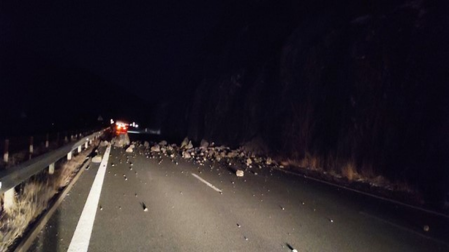 Временно движението от км 7 до км 9 по АМ „Струма“ се осъществява двупосочно в платното в посока София поради свлачище. Големи камъни са паднали на платното и преминаването е силно затруднено.