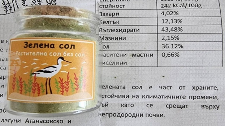 В Бургас създадоха сол от растение, което вирее в Атанасовското езеро. Продуктът е със зелен цвят и бе показан за първи път у нас по време на Панаира на солта.