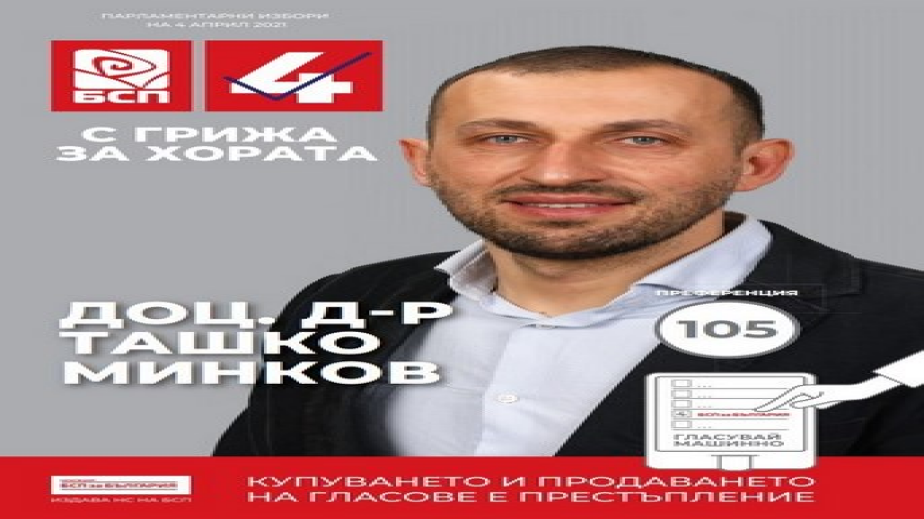 Ташко Йорданов Минков е на пето място в предизборната листа на „БСП за България” в 14 пернишки МИР. Роден е през 1983 г. в гр. София. И докато трънчани още от средата на миналия век извървяват еднопосочния път до столицата, при него е точно обратното – днес постоянното му местоживеене е в с. Лялинци, община Трън. Редовен преподавател в УНСС, катедра „Икономика на транспорта и енергетиката“, доктор по икономика. В момента заема академична длъжност „доцент“. Научните му интереси са в областта на икономическия анализ, икономическото моделиране и околната среда. Занимава се със собствен бизнес в областта на земеделието, което е и негово хоби. Член на БСП от 2004 г. По думите му от малък чувства близки идеите на партията. В момента е председател на Общинския съвет на БСП – Трън. Общински съветник втори мандат в Общинския съвет в Трън от листата на БСП. Обществените му интереси са доста разнообразни - икономика, история и култура.