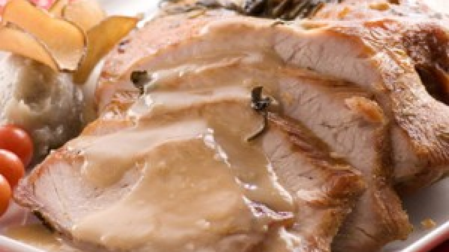 Нарежете 30 г от сланината на тънки резенчета, а останалата част - на кубчета. Почистете месото от ципите, натъркайте със сол, черен пипер и сух розмарин. Шпиковайте месото с кубчетата сланина и пресен розмарин. Сложете останалата сланина да се разтопи и в мазнината запържете за кратко месото. Заедно с него отстрани прибавете едро нарязания лук.Наредете запържения лук заедно с мазнината в тава, отгоре сложете ниска скара и върху нея месото. Полейте с виното и сложете да се пече в предварително загрята на 200 градуса фурна за около 50-60 минути. През 10-ина минути поливайте телешкото с 2-3 сл от горещия бульон. Сложете готовото месо в голяма чиния и го завийте с фолио за 20 минути да се запари.От лука и мазнината в тавата се приготвя сос. Загрейте останалата мазнина (ако не е много загоряла) и запържете в нея брашното. Разредете соса с малко бульон и добавете отделилите се в чинията сокове от месото. Подправете с лимонов сок и коняк. Бъркайте соса и след 8-10 минути го махнете от котлона. Поднесете телешкото контрафиле, нарязано на филии и полято със соса.