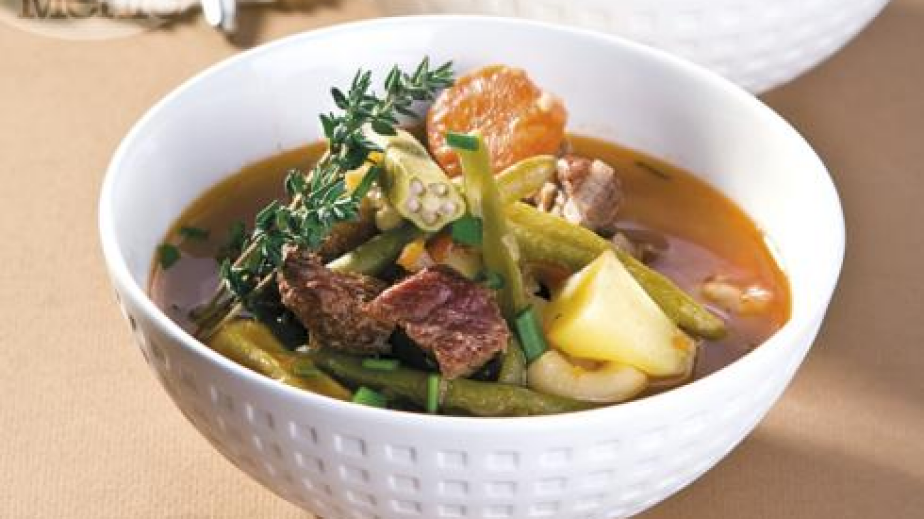 3.Слагат се зеленият фасул, бамята, доматите и картофите. Оставя се да поври още 20 - 30 мин.