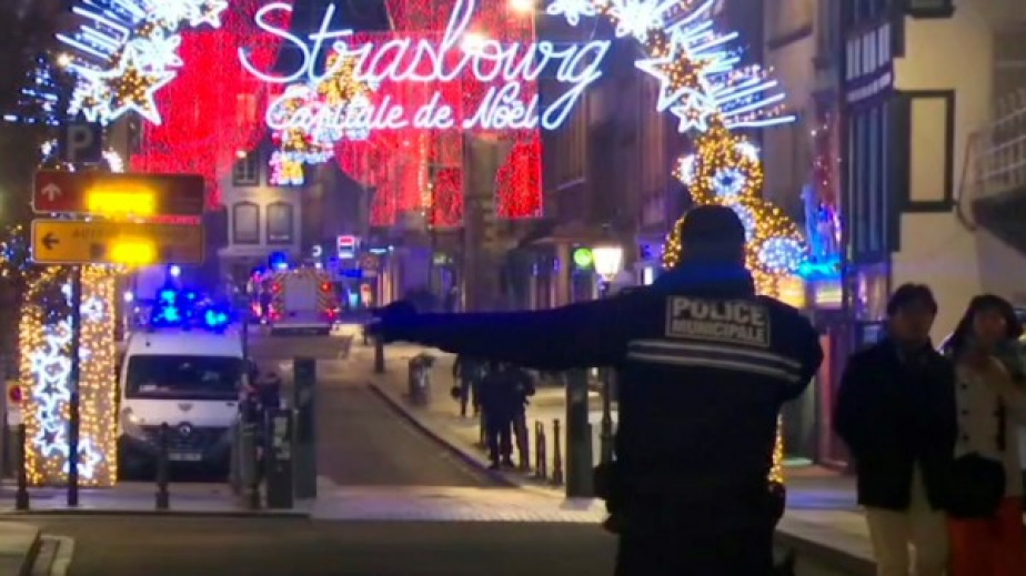 Франция повиши нивото си на сигурност, а полицията преследва стрелец, който уби трима и рани 12 други при терористично нападение на прочутия Коледен базар в Страсбург снощи вечерта. Щестима от ранените са в критично състояние.