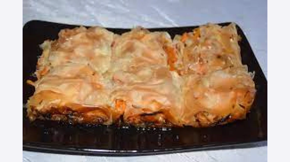 Корите се подреждат една върху друга като се мажат с масло. Разрязват се на 4 еднакви парчета. Разстилат се в 4 малки намазнени форми за печене, като се оставят краищата да стърчат навън.
