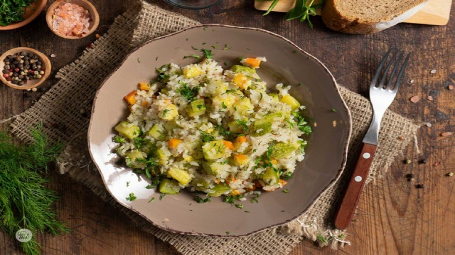 Варете докато оризът се сготви почти напълно, след което поръсете с нарязан на ситно копър, прехвърлете в тава и запечете за 10-20 минути, колкото оризът да се досготви и да поеме останалата течност. /Рецепта на matekitchen.com