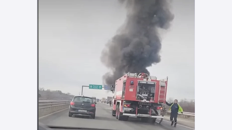Тир пламна на автомагистрала „Струма“. Инцидентът станал около 13 ч. днес в района на Мало Бучино, посока Перник, съобщиха шофьори.