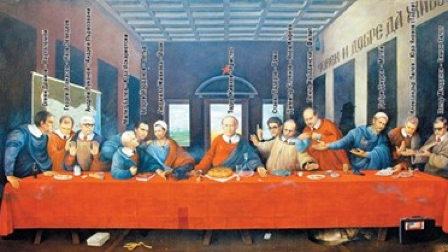 Персонажи в картината, която пресъздава сюжета на "Тайната вечеря" на Леонардо да Винчи, са всички приближени хора до Тато. За съществуването на тази картина знае и летописецът на Тодор Живков - проф. Недьо Недев, който само преди месеци пусна на пазара книгата "Дворцовият преврат срещу Тодор Живков от издателство "Труд".