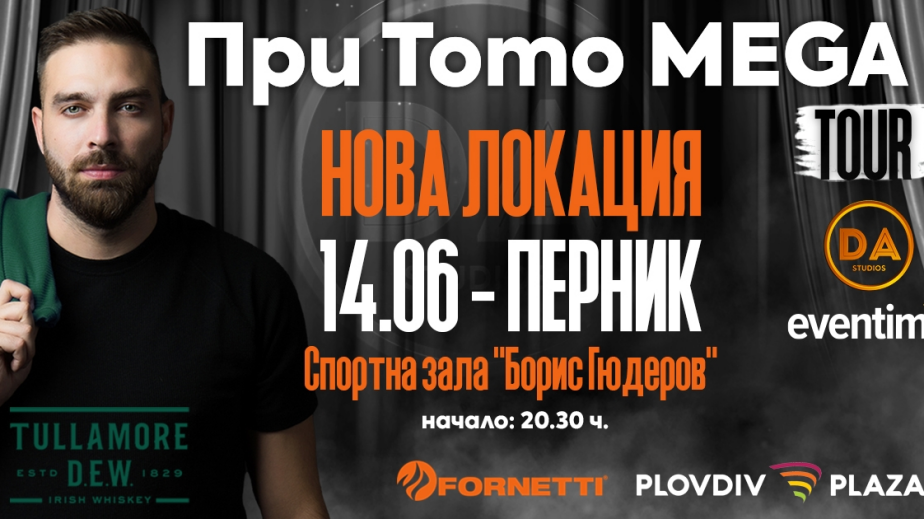 "При Тото MEGA TOUR" продължава тази вечер в Перник. Кой ще е гостът Тото пази в тайна до последния момент, но гарантира, че ще е MEGA!