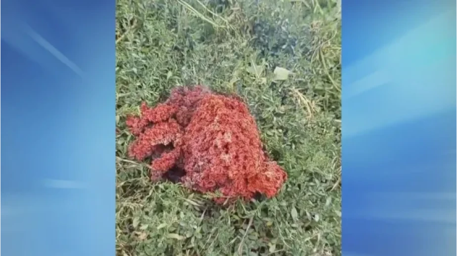 В тях се вижда нещо червено, за което очевидци обясняват, че дими и има остра миризма. bTV разговаря с кмета на Якоруда Мехмед Вакльов, който потвърди за находката и ни обясни, че е разпоредил да бъдат взети проби и материал от нея.