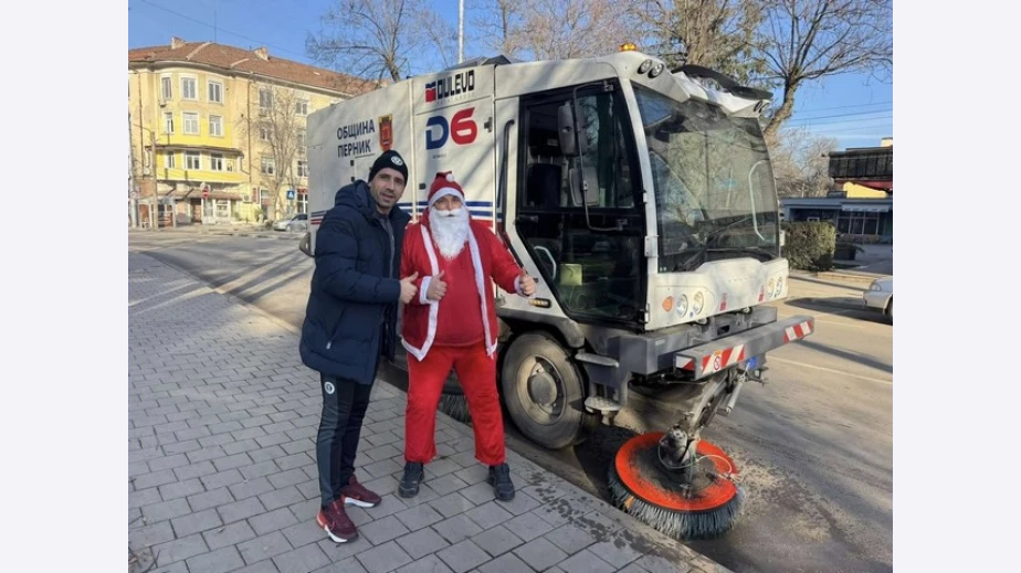 Дядо Коледа подкара почистваща машина в Перник. Гледката изуми местните.