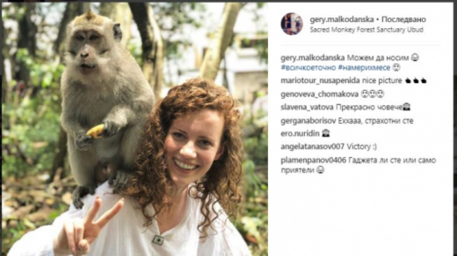 Синоптичката е пуснала и фотос от така популярните люлки, на които вече сме виждали някои плеймейтки, включително и Николета Лозанова. Освен него в профила й в "Инстаграм" могат да бъдат забелязани кадри с различни екзотични животни - жираф, маймуни и папагали. Ето няколко снимки от пленителната почивка на Малкоданска, от които всеки би завидял на красавицата от екрана./БЛИЦ