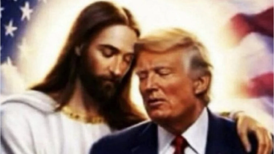 Доналд Тръмп скандализира с нова снимка с Исус Христос, създадена с изкуствен интелект, в профила си в Truth Social. На нея американският президент е показан прегърнат внимателно от Божия син.