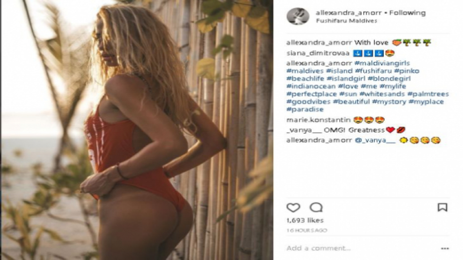 Влудяваща, пленителна, сексапилна и гореща. Всички тези епитети много точно описват снахата на Маги Халваджиян - Александра Енева. Чаровната хореографка и пловинка на Бебо Халваджиян не спира да показва изваяните си форми по горещите плажове на Малдивите.