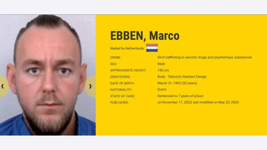 Европол определя Ебен за един от "най-търсените бегълци" в Европа за контрабанда на наркотици от Бразилия до Нидерландия.